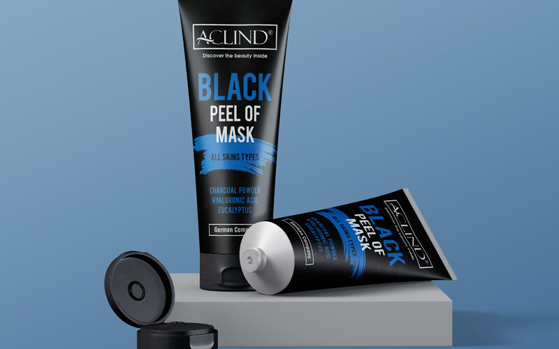 Aclind markası için hazırlanan siyah maske ambalajı